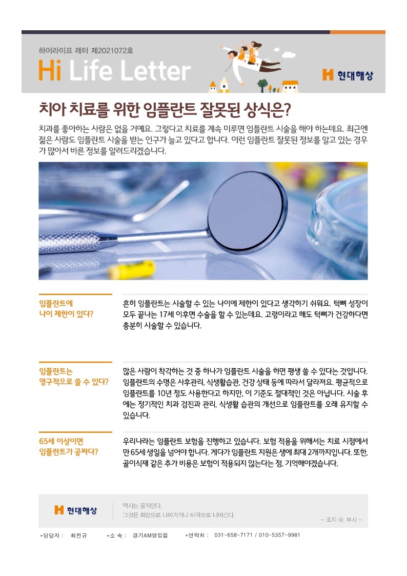 치아 치료를 위한 임플란트 잘못된 상식은? 페이지 정보 작성자 관리자 댓글 0건 조회 280회 작성일 21-11-09 10:50 본문 치아 치료를 위한 임플란트 잘못된 상식은? 목록 목록 다음글좋아하는 술에따라 치아도 다르게 케어해야 한다? 20.12.24